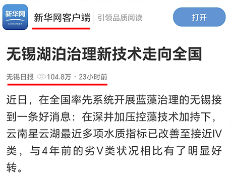 目前已在“三大湖”(太湖、巢湖、滇池)以及多個具有重要影響、大型湖庫上成功進行大規模、工廠化、無害化應急處置與防控。